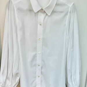 Rebecca Taylor Slub Button Down Blouse in White Size L