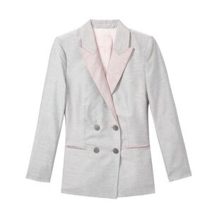 This Grey and Pink Double Breast Blazer from Rebecca Taylor features a slubby linen blend that pares back the power vibe of this double breasted blazer. This piece can go from conference duty to a drinks dates with ease.