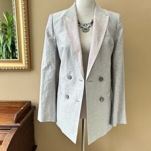 Rebecca Taylor Slub Linen Blend Gray and Pink Double Breasted Blazer Size 10