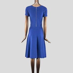 Rebecca Taylor A-line knit dress featuring short sleeves and scoop neck. Exposed zip closure eat back.