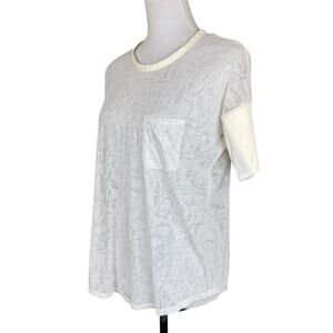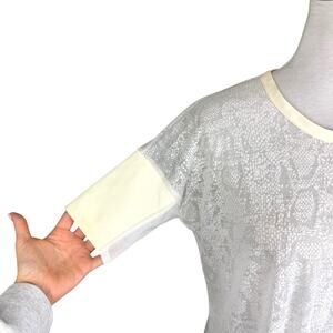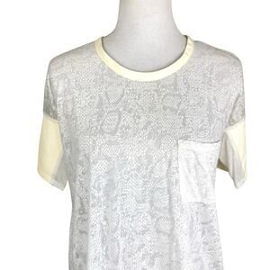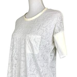Rebecca Taylor Snake Print Burnout White Leather Trim Short Sleeve Sheer Top