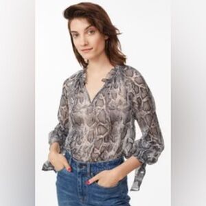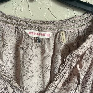 Rebecca Taylor Snake Print Silk Long Sleeve Blouse