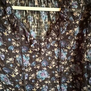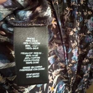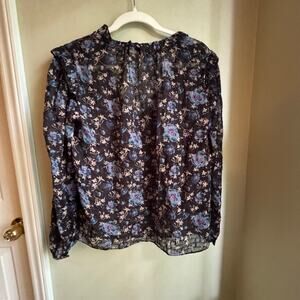 Rebecca Taylor Solstice Black Puff Sleeve Blouse Blue Floral Silk Cotton Blend