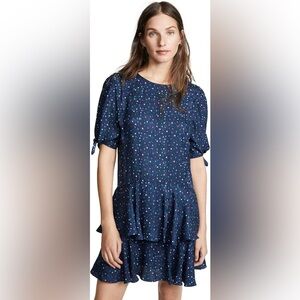 Rebecca Taylor Speckled-Dot Print 100% Silk Drop-Waist Mini Dress Womens Size 2
