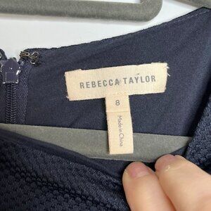 Rebecca Taylor Stacy Sleeveless Stretch Piqueu and Satin Navy Dress Size 8
