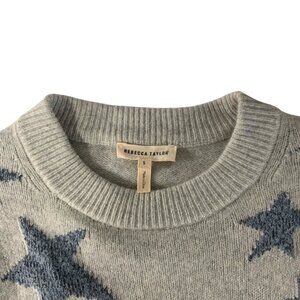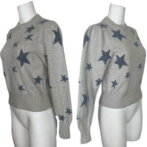 Rebecca Taylor Star Intarsia Sweater S Gray Wool Blend Puff Sleeve Crewneck Fall