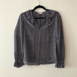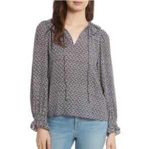 Rebecca Taylor Static Print Silk Ruffle Blouse