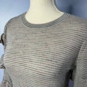 Rebecca Taylor Striped Ruffle Crew Neck Sweater Blue Pink Long Sleeve Size M