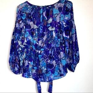 Rebecca Taylor Sz 6 Silk Top Blouse Abstract Floral Boho 3/4 Sleeve Peasant