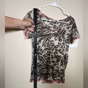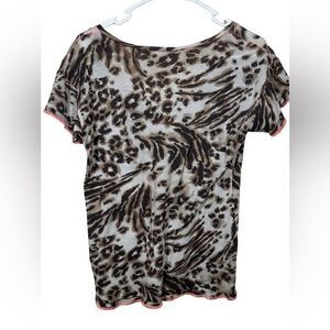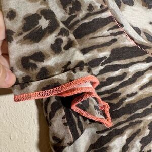 This Rebecca Taylor T-shirt has an Abstract animal print and has orange contrast stitching, it's a size xs and in gently used condition.