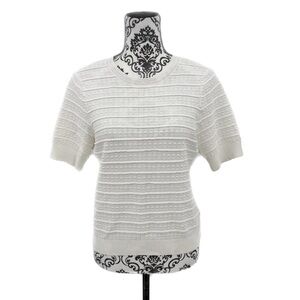 Rebecca Taylor Tech Lace Sweater White Textured Short Sleeve Crewneck Pullover