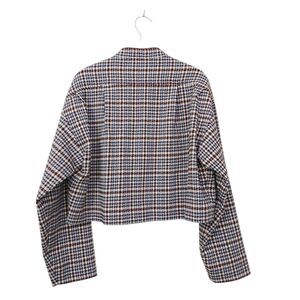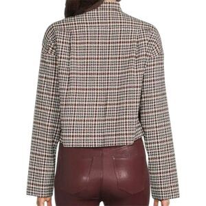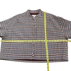 Rebecca Taylor Techy Houndstooth Jacket Womens Large Burgundy Blue Wool Blend Button Cropped