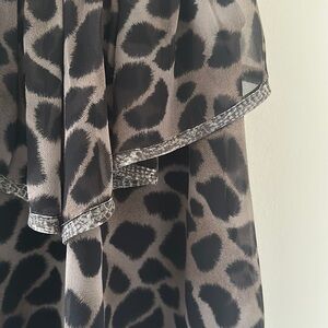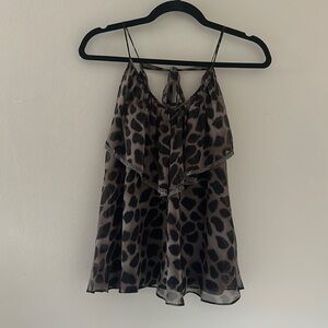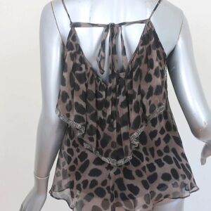 in a animal print silk print. Animal print- leopard and snakeskin design tank. 100% silk.