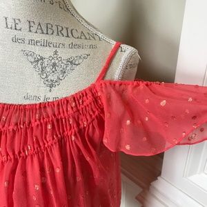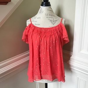 Women's Rebecca Taylor Top in a size 2. Orange / Coral color with metallic gold dots that add character and style. Originally $225 - Fast Same Day Shipping!