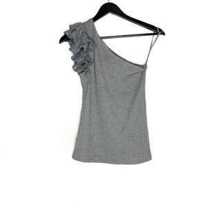 Rebecca Taylor Top Ribbed Jersey One-Shoulder Top Gray Color