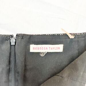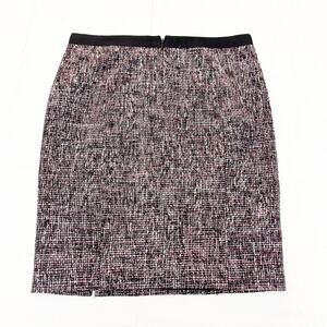 Rebecca Taylor Tweed Black/Pink Pencil Skirt Front Slit Back Zipper Size 10 MINT