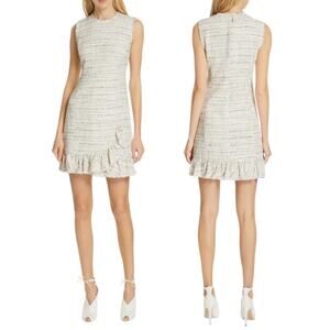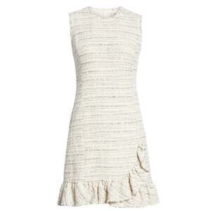 NEW Rebecca Taylor Tweed Boucle Mini Dress Ruffle Hem Cream
