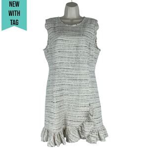 Rebecca Taylor Tweed Boucle Mini Dress Ruffle Hem Cream Size 14
