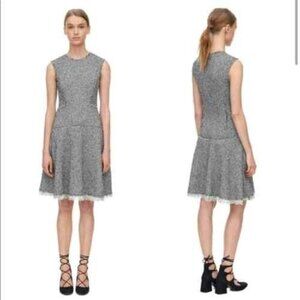Rebecca Taylor Tweed Dress Womens size 6 Raw Edge Drop Waist Metallic Silver