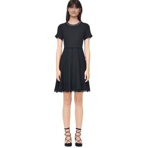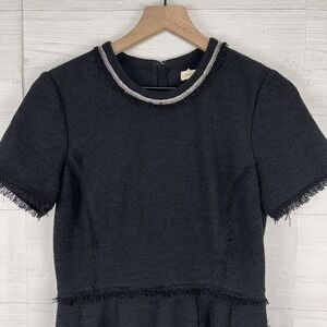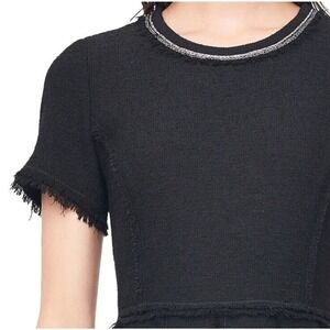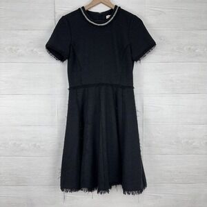Rebecca Taylor Tweed Dress Size 4 Black Stretch Tweed Fit & Flare Raw Edge
