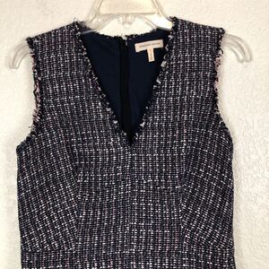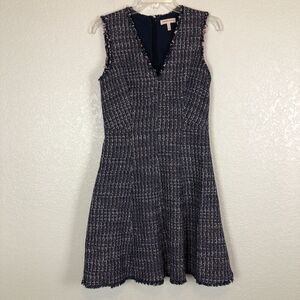 Rebecca Taylor Tweed Fit And Flare Dress Size 8 Navy Pink Raw Hem A Line Dress