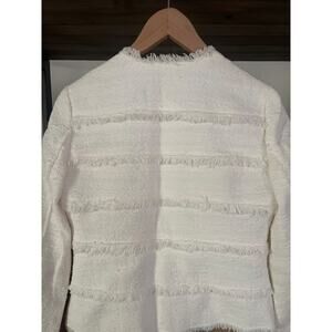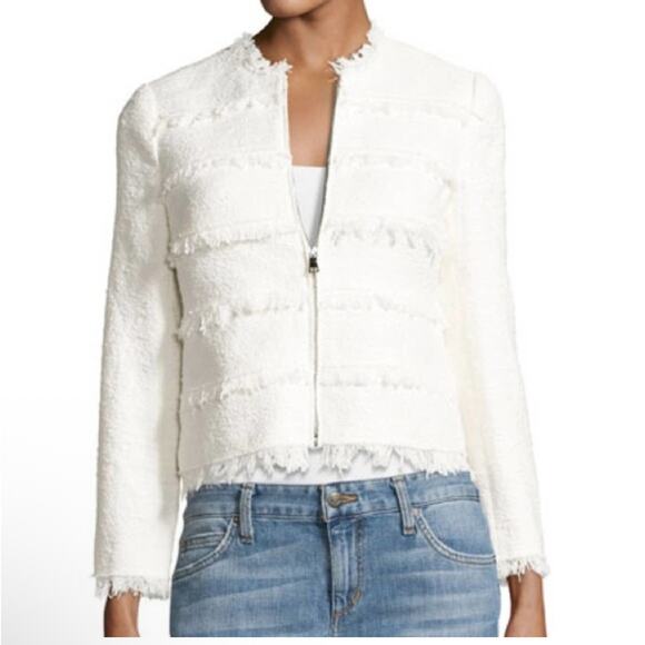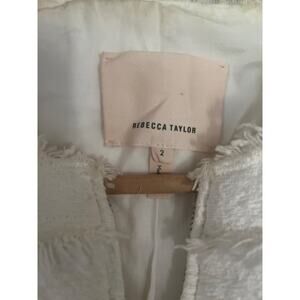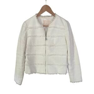 Rebecca Taylor Tweed Fringe Crop Zip Blazer White Sz 2