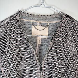 Rebecca Taylor Tweed Jacket Size 4 Zip Front Fringe Trim Pink Workwear Blazer