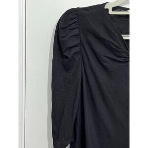 Rebecca Taylor Twist Front Blouse Small Black Wool Blend Jersey Knit Whimsigoth 3/4 Puff NWT