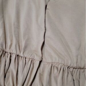 A casual sophistication hallmarks the adjacency. But the piece is also more. Thoughtfully designed, at the base of the neck drop, there is a tiny little hook and eye closure that can be undone and worn open to transform the top into a second layer cardigan.