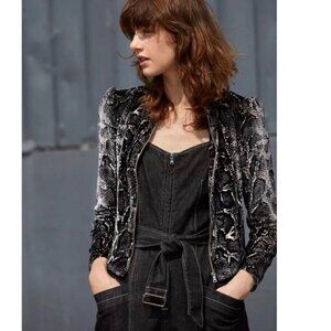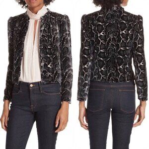 Rebecca Taylor Velvet Snake Print Jacket Silk Blend Black Size Large
