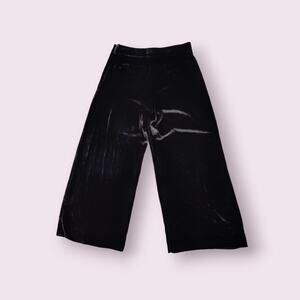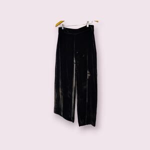 Rebecca Taylor Wide Leg Crop Black Velvet Pants Hi Waist Rayon Silk Size 12