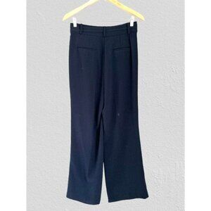 Stylish navy blue wide-leg pants featuring pleats and a high-waisted fit. Belt tie detail adds a touch of elegance for work or casual wear.