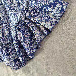 Rebecca Taylor Women 100%Silk Floral Ruffle Hem Top XS Blue Romantic Boho Spring