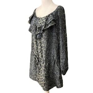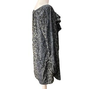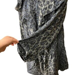 Rebecca Taylor Women Leopard Print Tunic mini dress Boat Neck Silk blue gray 10