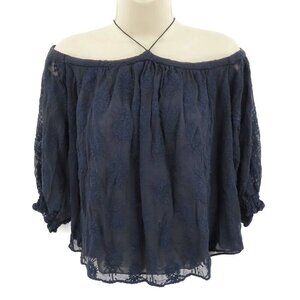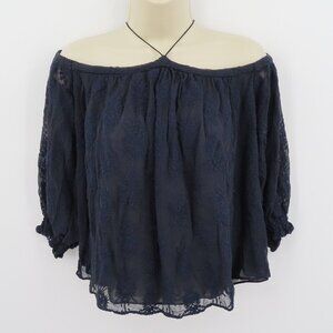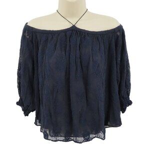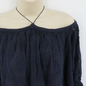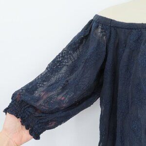Rebecca Taylor Womens 6 Blue Embroidered Cold Shoulder Flowy Blouse Shirt Top
