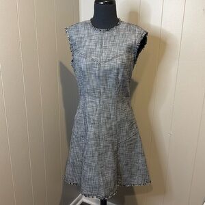 Rebecca Taylor Women’s 8 Sleeveless Slub Suiting Gray Drop Waist Dress Frayed