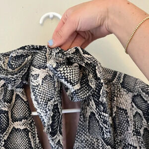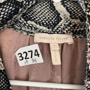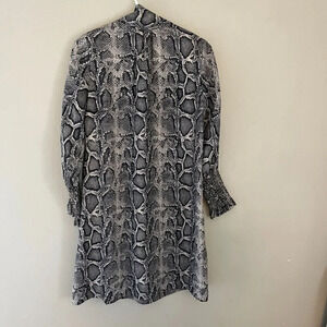 Rebecca Taylor Womens Black Gray Shift Dress 2 Long Sleeve Tie Neck Snake Print