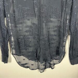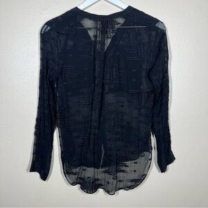 Rebecca Taylor Womens Black Sheer Button Front Silk Textured Blouse size 2