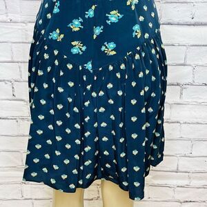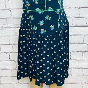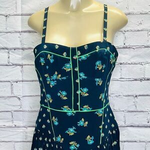 Rebecca Taylor Womens Blue Spaghetti Strap Floral Silk Fit & Flare Dress Size 12
