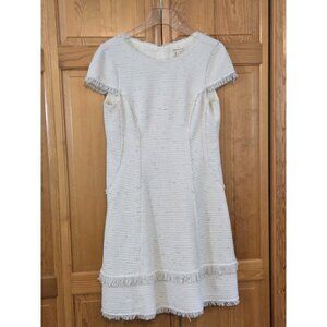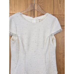 Rebecca Taylor Womens Dress 10 Fringe Tweed Shift Ivory Metallic