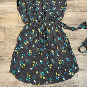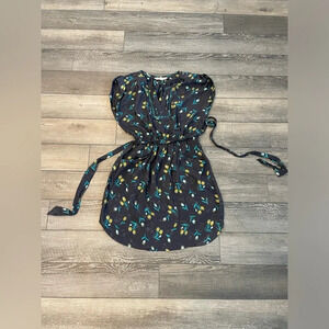 Rebecca Taylor Grey Silk Floral Dress size 0. Grey silk with yellow green floral pattern. Split neckline with turquoise beading detail. Two pockets. Condition is excellent, no flaws!