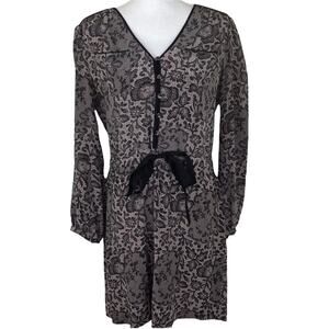 Rebecca Taylor Women's Long Sleeve Silk Floral Dress Size 6 Gray Tie Waist