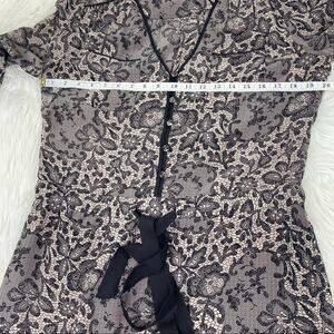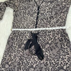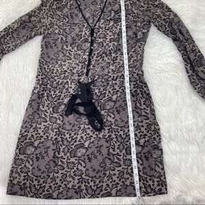 Rebecca Taylor Women's Long Sleeve Silk Floral Dress Gray Size 6 Tie Waist