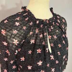Rebecca Taylor dress, black floral dress, smocked waist dress, ruffled mini dress, silk chiffon dress, flowy dress, floral print dress, mini dress, smocked dress, ruffled dress, black dress, silk dress, chiffon dress, flowy mini dress, feminine dress, whimsical dress, romantic dress, floral mini dress, Rebecca Taylor mini, smocked waist mini.