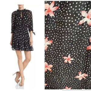 Rebecca Taylor Maui Clip Floral Dress smocked waist ruffled mini dress silk chiffon flowy keyhole ruffles