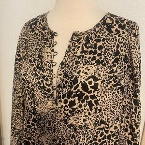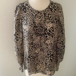 Rebecca Taylor Women's Silk Leopard Motif Black and Tan Blouse Size 2