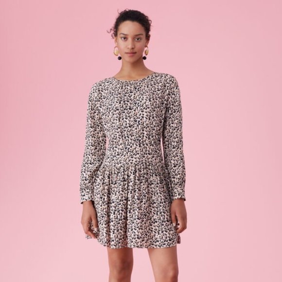 Rebecca Taylor Womens Size 8 100% Silk Leopard Print Long Sleeve Short Dress