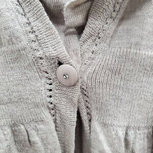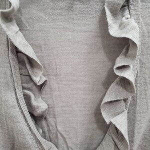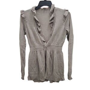 Rebecca Taylor Women's Taupe Wool Alpaca Knit Ruffle Neck Academia Cardigan S