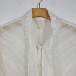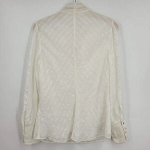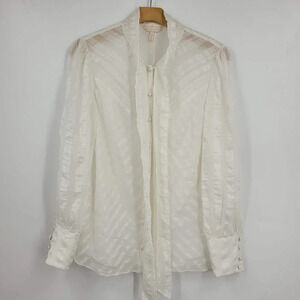 Rebecca Taylor Women's Tie Neck Satin Stripe Silk Top in Snow Size Small $350