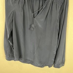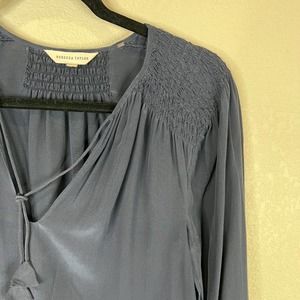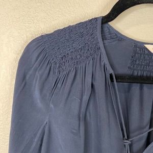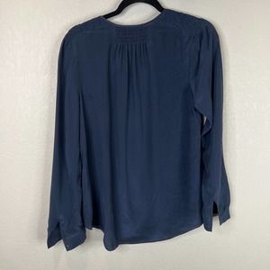 Rebecca Taylor Women's V Neck Smocked Blouse Top Long Sleeve Navy Blue Size 4